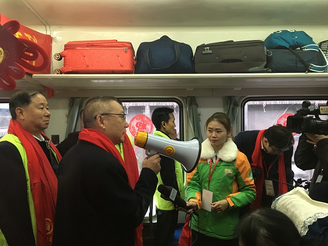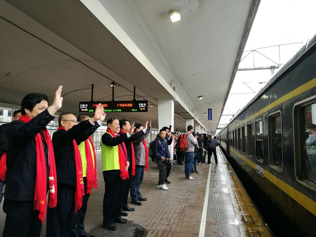 113日,随着列车的鸣笛声,广东省湖北商会2017暖冬行动爱心专列从广州火车站开出,一路向北,直达武昌站。这趟载满爱心的专列让1500名湖北籍在粤务工人员开心地踏上返乡旅途。省工商联副主席张宏斌出席了发车启动仪式并讲话。广东省社会组织管理局副局长徐祖平、共青团广州市委员会副书记孙柱、湖北省人民政府驻广东办事处副主任牟松等嘉宾出席活动。